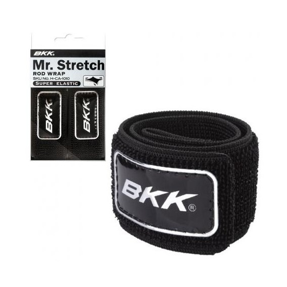 BKK Mr. Stretch Rod Wrap. LE BKK Mr. Stretch sono rod wrap con un'alta elasticità grazie al materiale di altissima qualità che è stato utilizzato! Si comporta molto bene anche in termini di durata. Le parti più ruvide del velcro sono state inoltre arrotondate per impedire di danneggiare con graffi le canne. Colore nero con logo BKK in argento.