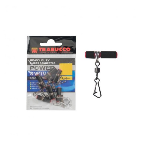 Attacco scorrevole Trabucco con girella rolling, perfetto per montature con piombo scorrevole. Confezione da 6 pezzi.