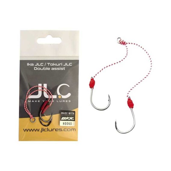 L'assemblaggio comprende: 1 doppio assist di 3X (HIGH CARBON) ami BKK #8, confezionati con treccia da 0,6 mm e anello saldato in acciaio inox.