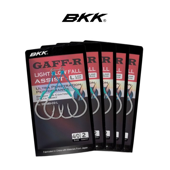 Il gancio di assistenza BKK Gaff-R pre-legato è dotato di cavo di assistenza in fluorocarbon BKK che garantisce un corretto orientamento dell'amo, migliorando le sue prestazioni di penetrazione e fornendo una flessibilità ben bilanciata al cavo.