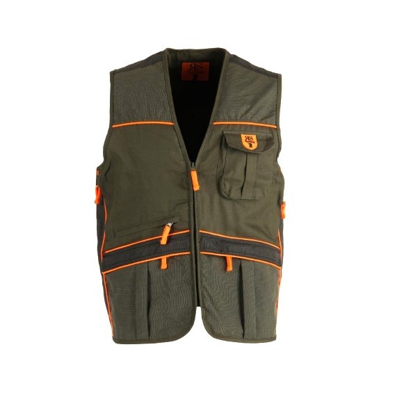 Gilet RS Hunting verde e arancione mod.LV800. Il gilet è realizzato in kanvas di cotone con inserti in tessuto tecnico e profili in arancio fluorescente perfetto da utilizzare nei boschi dove è necessario l'utilizzo di abbigliamento ad alta visibilità. Il gilet da si presenta con apertura a zip, dispone 2 comode tasche frontali, 1 tasca interna con zip, 2 tasche da riposo e 1 tasca interna con zip. Il gilet è resistente ed è ottimo da utilizzare durante il vostro periodo di caccia.