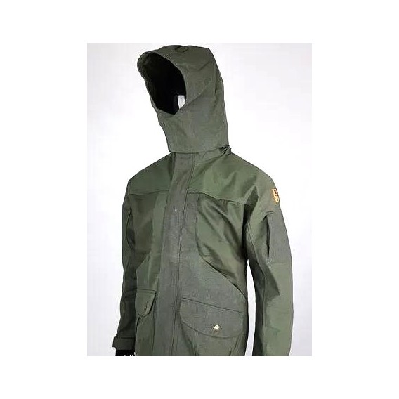 Giacca da Caccia RS Hunting LV 150, Giacca realizzata con tessuto kanvas di cotone ed applicazione di tessuto tecnico a contrasto, dotata di 2 comode tasche posteriori con zip, 2 grandi tasconi frontali con patta ed all’interno una comodissima cartucciera elastica, 2 tasche con zip a scomparsa, bretelle all’interno. Cappuccio staccabile. Fodera di cotone.