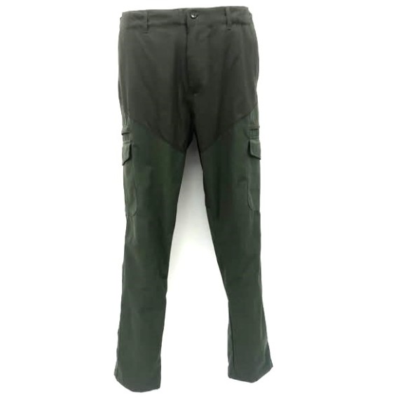 Pantalone da caccia la cui composizione vanta ottimo tessuto canvas di cotone leggero e rifinito con un tessuto tecnico protettivo, un tessuto tipo kevlar che protegge dai rovi e dall’acqua, grazie alla sua elevata capacità impermeabile rendendo così il capo antispino impermeabile e allo stesso tempo traspirante. Oltre alle quattro tasche ampie possiamo trovare anche una comodissima tasca porta coltello.
