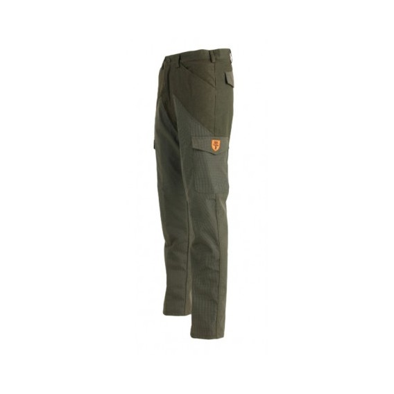 Pantalone RS Hunting verde mod. T-101. Pantalone realizzato in ottimo tessuto kanvas di cotone con applicazione in tessuto tecnico antispino ed antirovi assicurando al pantalone oltre ad uno stile, una lunga durata nel tempo. Il pantalone è dotato di 2 comodi tasconi laterali con patta e zip, 2 tasche posteriori con patta e zip e 2 comode tasche frontali. Questo pantalone è adatto al periodo autunno/inverno ed è adatto a tutti i tipi di caccia.