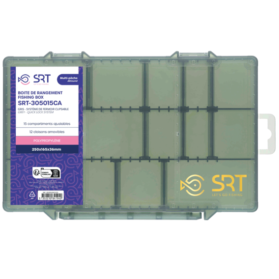 La scatola Sert SRT 305015CA è una scatola per esche ed accessori da pesca con ben 12 divisori in dotazione, per una perfetta organizzazione del materiale. Realizzata con materiali plastici di qualità è resistente agli urti ed ai componenti chimici delle esche morbide. Con chiusura di sicurezza rinforzata.