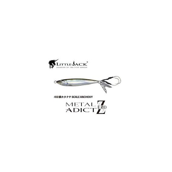 METAL ADICT ZERO 40GR DI CASA LITTLE JACK, AZIENDA GIAPPONESE LEADER NEL SOTTERE DELLA PROGETTAZIONE E COSTRUZIONE DI ESCHE ARTIFICIALI DI ALTISSIMA QUALITA'. IN PARTICOLARE QUESTO METAL-JIG IDEALE PER LA RICERCA DI SVARIATI PREDATORI MARINI E NON SOLO. HA DATO MOLTI RISCONTRI POSITIVI SU AGUGLIE, OCCHIATE,  MA ANCHE LAMPUGHE TONNETTI ALLETERATI E MOLTI ALTRI.