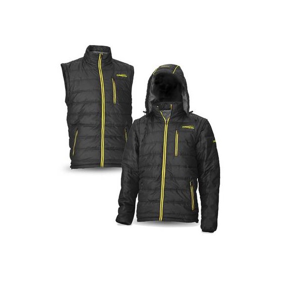 Pratica giacca invernale di peso contenuto e poco ingombrante nell’azione di pesca. Dotata di cappuccio regolabile, ha le maniche rinforzate per resistere agli sfregamenti e staccabili per essere trasformata in gilet.