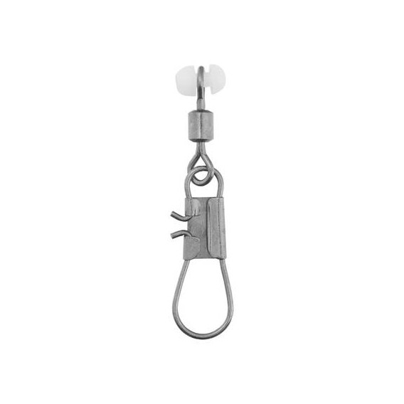 Girella con moschettone, dotata di perlina in plastica che ne agevola lo scorrimento sul monofilo.