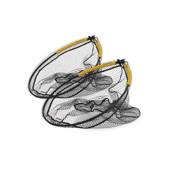 Testa di guadino ideale per grossi pesci realizzata con rete a maglia larga gommata. I due galleggianti in EVA facilitano l’azione di salpaggio sostenendo la testa immersa nell’acqua.