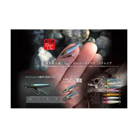 Non più esche vive. La dimensione del polpastrello dell'indice e la forma reale. Il più piccolo jig in metallo che ha un'azione affilata è un micro addict. Quando si incontra un banco di pesci, i morsi del pesce non si fermano sul fondo e se il pesce viene agganciato, i morsi vengono ripetuti. Puoi sentire questa leggerezza e le dimensioni minuscole con un gancio per orpelli.