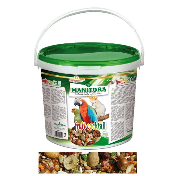 Fruit Cocktail Manitoba è un miscuglio di frutta disidratata, frutta secca, legumi, estrusi e, semi. Una vera leccornia per i pappagalli, oltre ad una esplosione, di colore e fonte di gioco.
