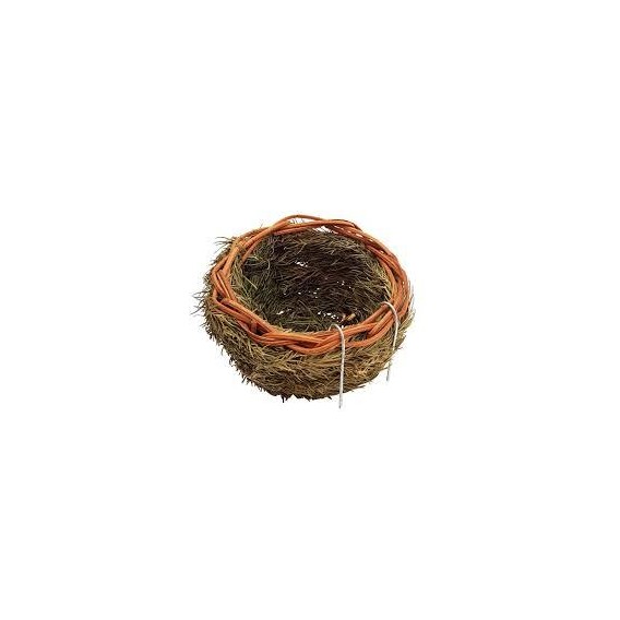 Nido di uccelli di canto selvaggio di rami di abete. La struttura in vimini rende questo nido molto forte e ben formato. Puoi appendere il nido ovunque con i ganci in filo metallico.