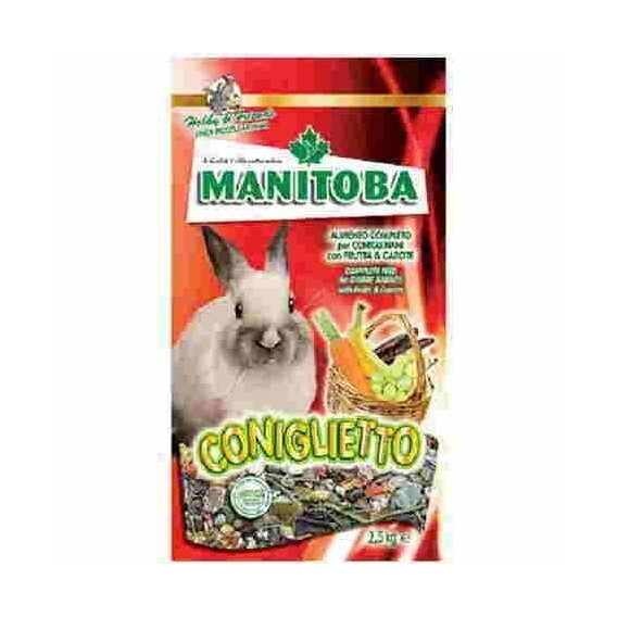 Istruzioni per un uso corretto Il Coniglietto Manitoba è un alimento completo da somministrare in apposite mangiatoie in quantità corrispondente a quella mediamente consumata nelle 24 ore, e ciò in funzione dell’attività fisica, dello spazio a disposizione, del microclima e dell’età del coniglio. Soprattutto nei conigli costretti ad una scarsa deambulazione è consigliabile associare al miscuglio fieno di buona qualità. Garantire acqua fresca e pulita sempre a disposizione.