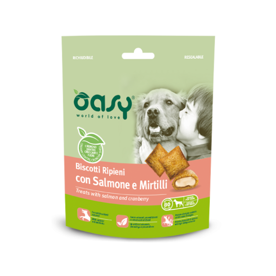 OASY CANE BISCOTTI RIPIENI SALMONE E MIRTILLI 80g