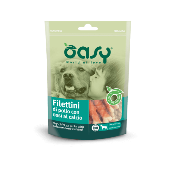 OASY SNACK DOG - FILETTINI DI POLLO CON OSSI AL CALCIO 100g