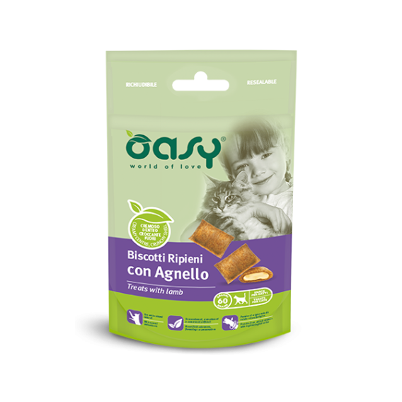 OASY SNACK CAT - BISCOTTI RIPIENI CON AGNELLO 60G