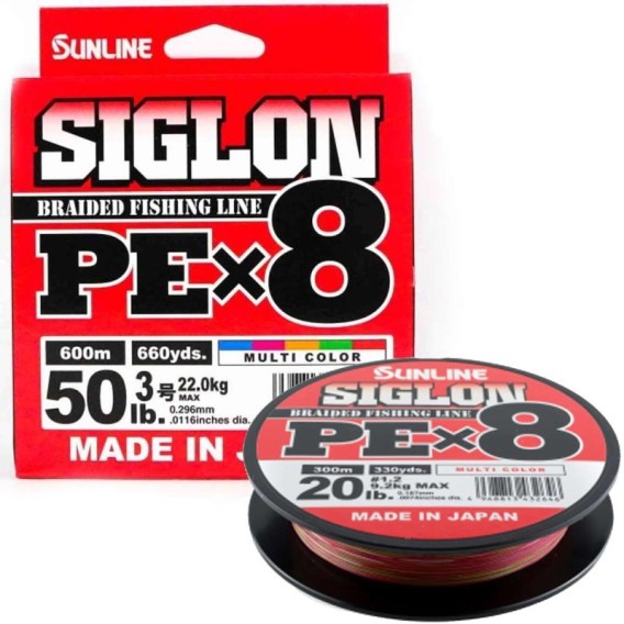 Il Siglon PE X8 "Multi Color" della Sunline è la versione di colore "Multi Color" di questo PE ad 8 capi dall'ottimo rapporto qualità/prezzo. Si tratta di un trecciato PE liscio del tipo "EX-PE" (Excellent PE) composto da 8 capi, assemblati utilizzando il metodo di produzione micro-pitch. La struttura perfettamente circolare e ben bilanciata creata dall'intreccio degli 8 capi riduce drasticamente la resistenza degli anelli, così da consentire un lancio fluido con un rumore ridotto. Questa versione "Multi Color", composta da 5 colori (blu, rosa, arancione, verde, rosso) con 10 metri per ogni colore, risulta perfetta per diverse tipologie di pesca, dalle tecniche in verticale e la traina dalla barca, allo Shore Jigging dalla riva.